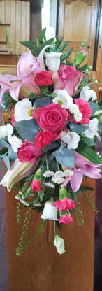 A church can be transformed with flowers by enhancing the beauty of the building. Large pedestal arrangements can add an instant burst of colour and fragrance whilst pew ends provide a delicate finish to the aisle.